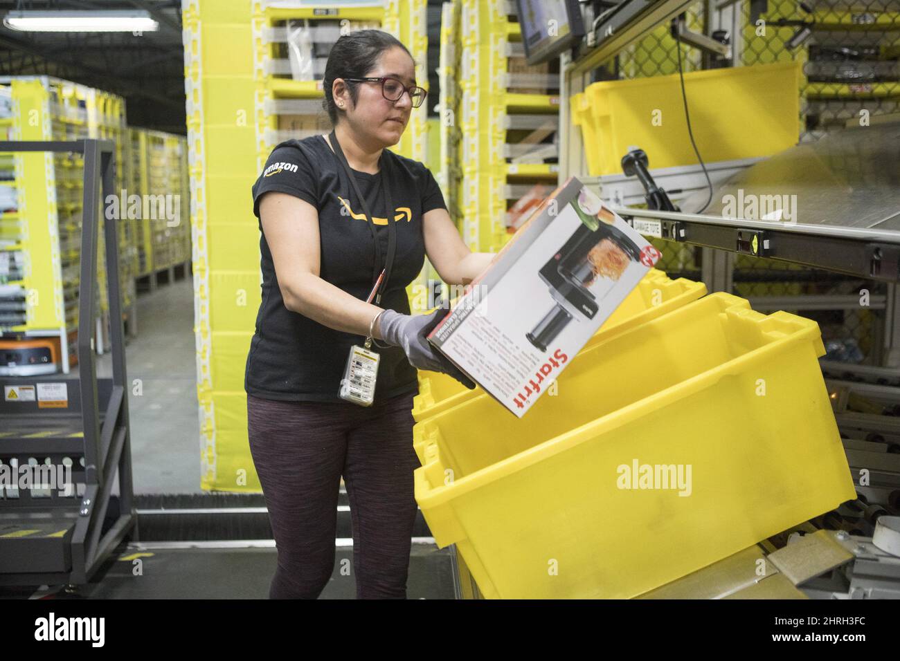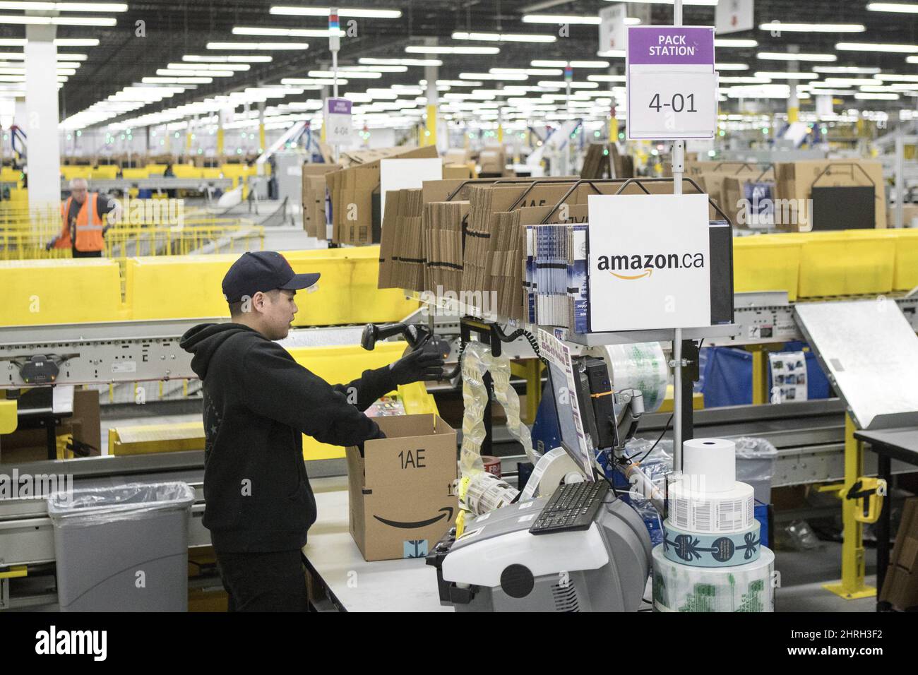 An Employee Works At The The Amazon Fulfillment Centre In Brampton Ont On Monday November 26 2018 The Centre Expects To Process 2 5 Million Packages During The Period Between Black Friday And